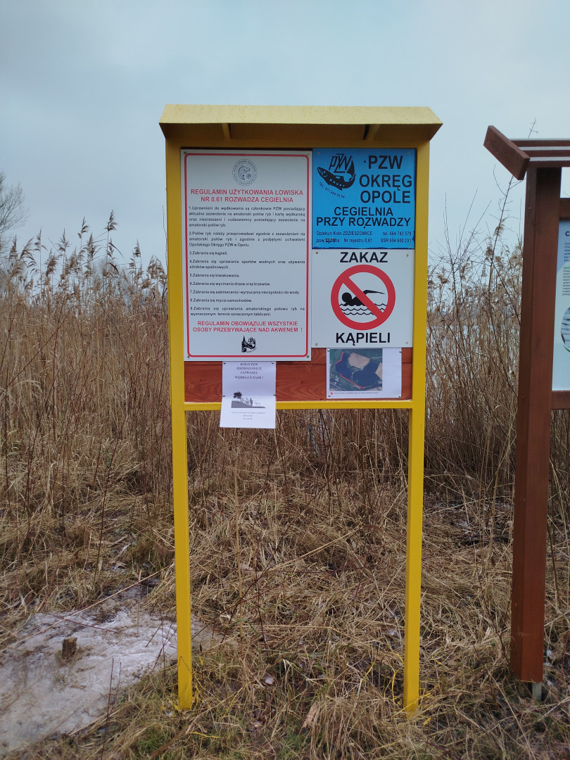 Koło PZW ZdzieszowiceŁowisko Rozwadza Cegielnia - Wyrobisko o powierzchni 12,28 hektara. Leżący parę kilometrów od ludzkiej cywilizacji pośród pól i łąk w niedalekim sąsiedztwie rzeki Odry. Woda bardzo czysta ale również zarośnięta, przeważnie moczarka kanadyjska. Rybostan bogaty- występuje tutaj przede wszystkim karp który dorasta do dużych rozmiarów trafiają się osobniki powyżej 15 kg. Można łowić również leszcze, płocie, występuje karaś, okoń, szczupak no i duży amur. Spinningowanie bardzo utrudnione z powodu występującej roślinności podwodnej, wskazane wędkowanie na spławik, jak i grunt.