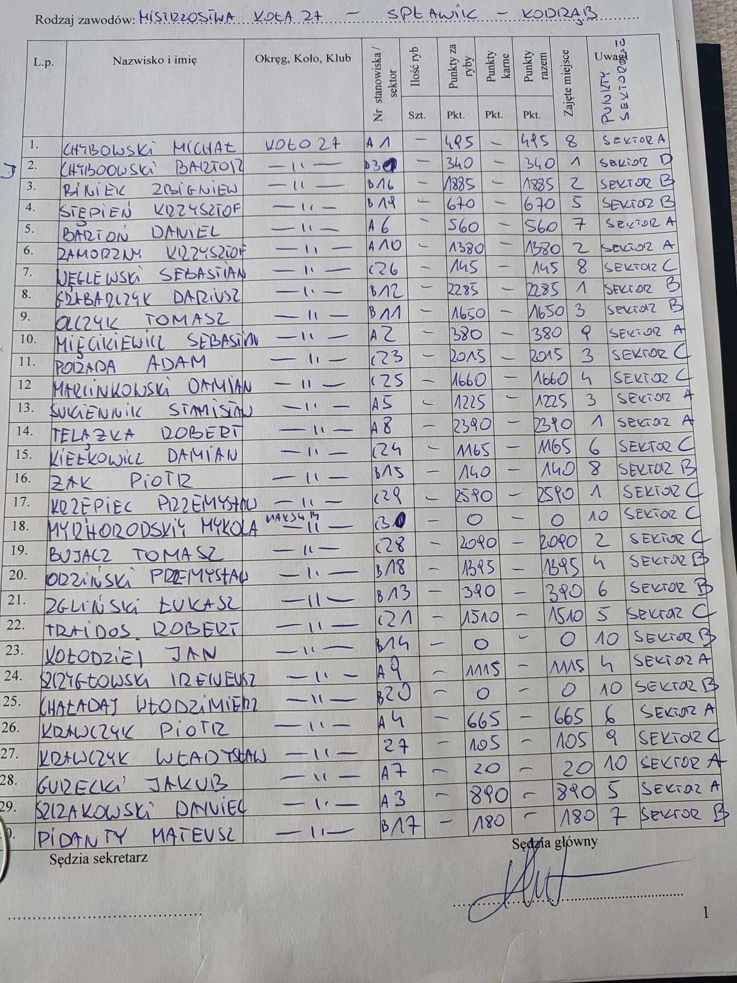 Zawody Spławik /Grunt - Koło nr 1