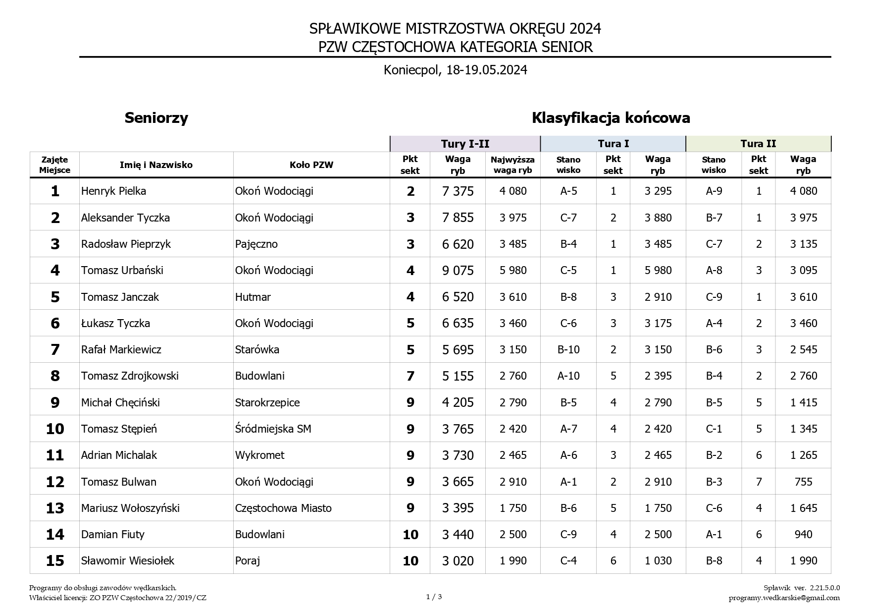 Zawody Spławik /Grunt - Koło nr 1