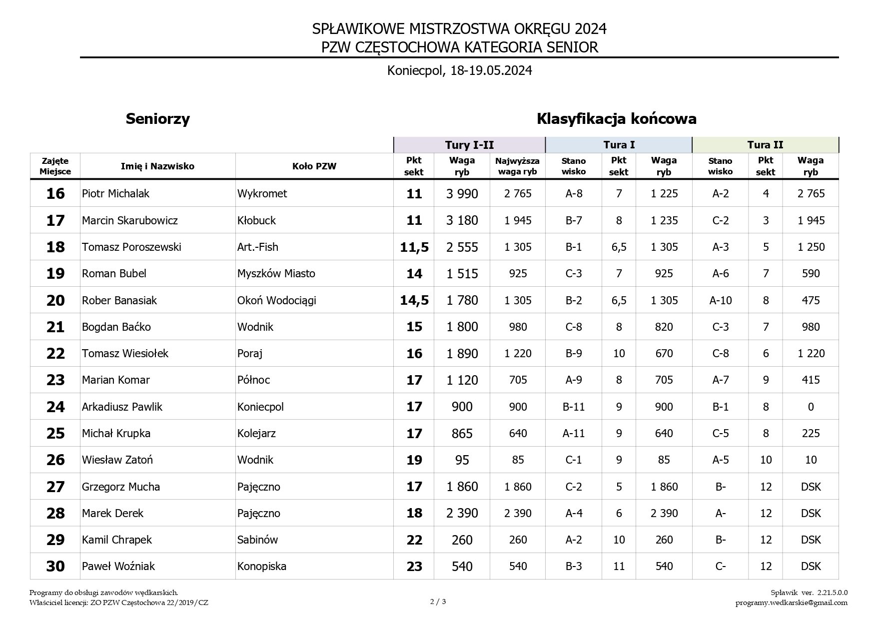 2 Spławikowe GPP seniorów, kobiet, U25 2023
